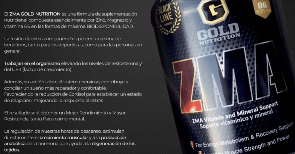 ZMA de GOLD NUTRITION es una avanzada fórmula que combina Zinc, Magnesio y Vitamina B6 en proporciones científicamente estudiadas para optimizar los niveles hormonales, la recuperación muscular y la calidad del sueño en deportistas.