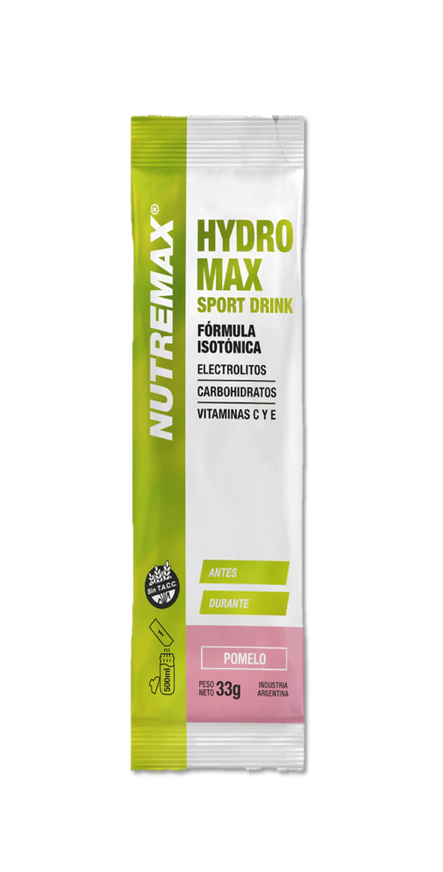 NUTREMAX Hydromax Display contiene 20 sobres individuales de bebida isotónica en polvo, ideal para llevar a todas partes y consumir cuando lo necesites. Su fórmula con electrolitos y carbohidratos está diseñada para una hidratación óptima y rápida durante cualquier actividad física.